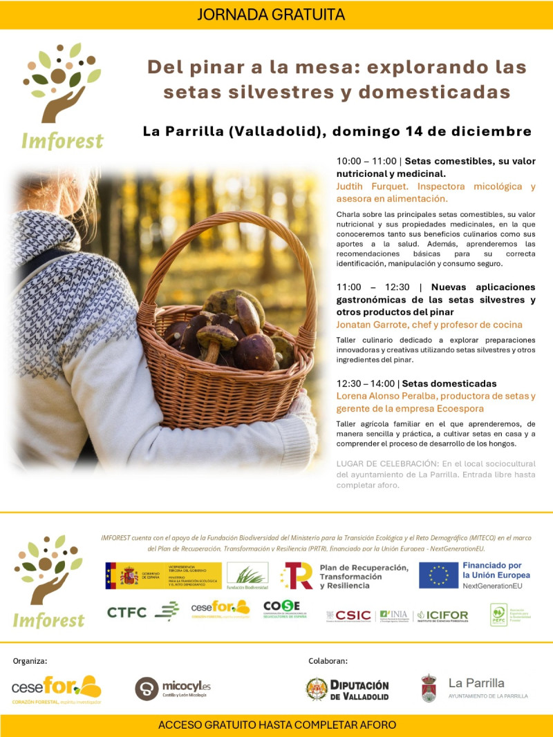 🍄 Nos os perdáis las jornadas “Del pinar a la mesa: explorando las setas silvestres y domesticadas”